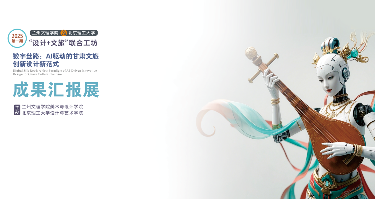 本次展览由新葡的京集团35222vip、北京理工大学设计与艺术学院联合举办,是响应两校“教育部对口支援西部地区高等学校计划”建设的务实行动和生动实践。当前在"数字中国"战略蓝图指引下,人工智能正以前所未有的深度和广度重塑文明传承的时空维度。甘肃作为一带一路黄金段与重要节点,承载着中华文明千年积淀的文化密码,更肩负着新时代"一带一路"文化数字化建设的国家使命。通过"AI+教育"教学范式变革,本次工坊旨在构建“传统文化解码—数字技术转译—文旅场景应用”全链条人才培养体系,进一步巩固和提升文旅产业、非遗保护等领域的特色优势,为甘肃省打造文旅强省贡献力量。此次与北京理工大学“本研联动+东西协作”,两校以"数字技术赋能文化表达"为内核,形成"文化智库+AI算法+场景设计"的创新矩阵。学生们运用生成式AI解构马家窑城市场景应用、解构敦煌纹样基因、通过数字孪生技术再现丝绸之路商贸场景等,借助智能算法充分挥洒创意、优化文旅服务生态,最终产出了《揽胜金城·筑梦兰马》动态视觉作品、《陶然街巷·智筑街景》城市景观设计等8组创新成果,实现了传统文化资源的创造性转化。展览为文化活态传承提供新路径,实现了教育链与产业链深度耦合,助推“数字丝路”建设从理论构想走向实践创新。