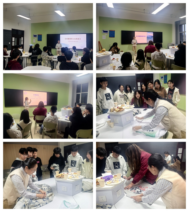 4月23日,学院开展“衣物整理方法学习与实践”活动。指导老师从物品分类、取舍原则到收纳技巧进行系统讲解,提出了以下整理原则并带领学生进行实操演练: