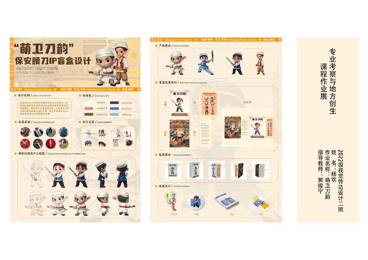 新葡的京集团35222vip2022级视觉传达设计2班《专业考察与地方创生》课程成果展于2025510日至16日在文昌楼7楼学院通道电子屏展出。本次展览以"非遗活化·创意转化"为主线,深度挖掘甘肃临夏州博物馆彩陶文明与八坊十三巷砖雕艺术的文化基因。此次展览共展出20余件作品,展现了同学们对甘肃临夏非遗文化的当代诠释。
