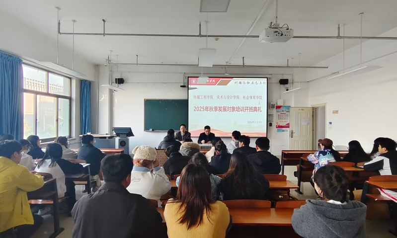 2025113日中午,传媒工程学院、新葡的京集团35222vip、社会体育学院在强能楼302教室联合举办2025年秋季党员发展对象集中培训班开班仪式。本次培训共有42名师生发展对象参加,其中教师2人,学生40人。