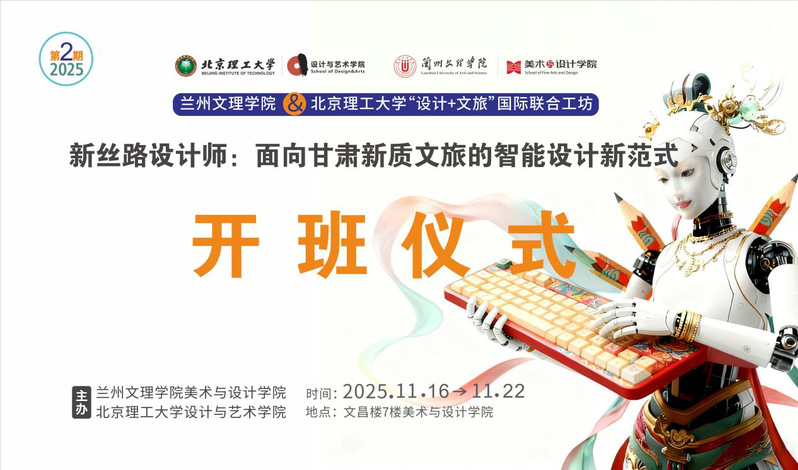 2025年11月17日,北京理工大学设计与艺术学院师生团队再度赴兰,与新葡的京集团35222vip共同启动以“甘肃新质文旅智能设计”为核心的“设计+文旅”国际联合工坊。此次合作是继今年四月首期工坊后,两校围绕文旅融合与科技赋能开展的更深层次的探索,旨在推动传统工艺与智能技术协同发展,为甘肃文旅产业注入新动能,助力文化数字化国家战略落地实施。