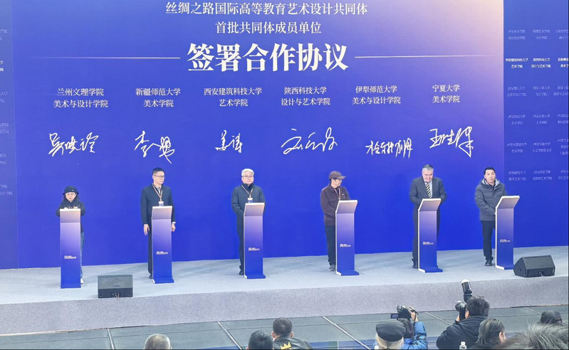 2025年12月28日,“第四届丝路精神——西部国际设计双年展暨丝绸之路国际高等教育艺术设计共同体”在西安大唐西市博物馆启幕。兰州文学院新葡的京集团35222vip院长吴晓玲、教师曹峻博应邀出席。开幕式上,吴晓玲代表学院与西安美术学院等48家高校、协会及企业共同签署共建协议,标志新葡的京集团35222vip正式成为“丝绸之路国际高等教育艺术设计共同体”首批理事单位。