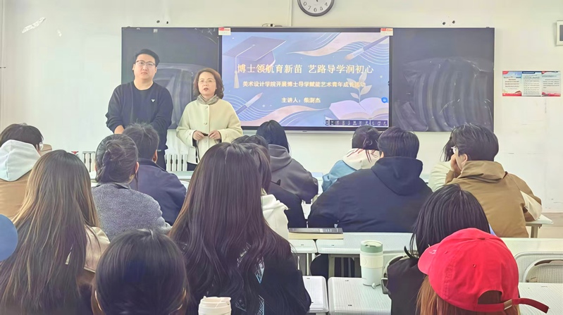 为深入落实立德树人根本任务,充分发挥博士教师的专业优势与引领作用,搭建艺术青年成长成才平台,助力学生提升专业素养、明确发展方向,3月18日,美术设计学院团学办、“心海导航”辅导员名师工作室,在强能楼304教室,开展“博士领航育新苗,艺路导学润初心”博士导学赋能艺术青年成长系列活动,团学办主任唐艳丽主持,环境设计柴澍杰博士主讲,2023级环境设计专业学生50多人参与此次活动。